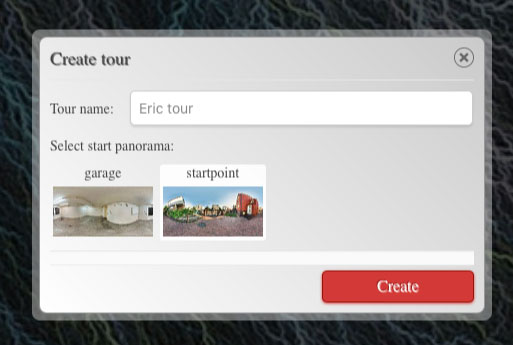To create tour you need first add all panoramas you need in virtual tour. At top right corner click «Add panorama»